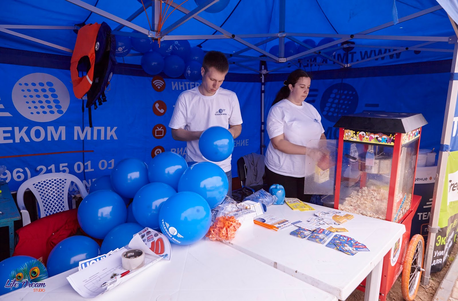 Еще приехала палатка , в нее поставили оборудование для ведущего, шарики и бесплатный по-корн для всех гостей .